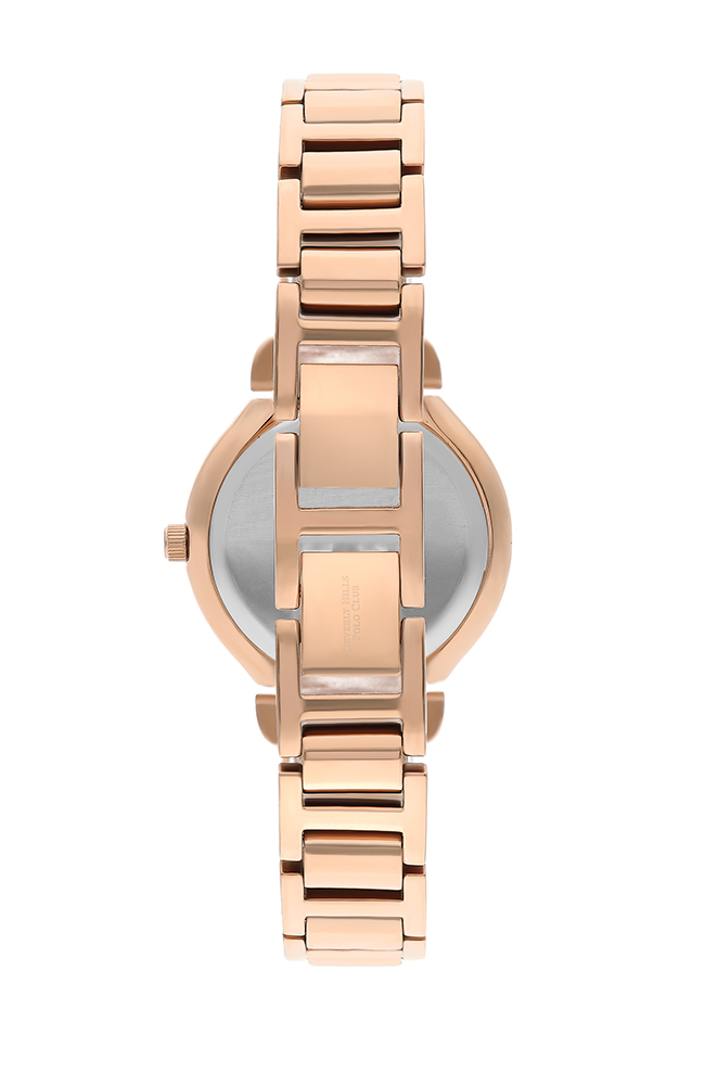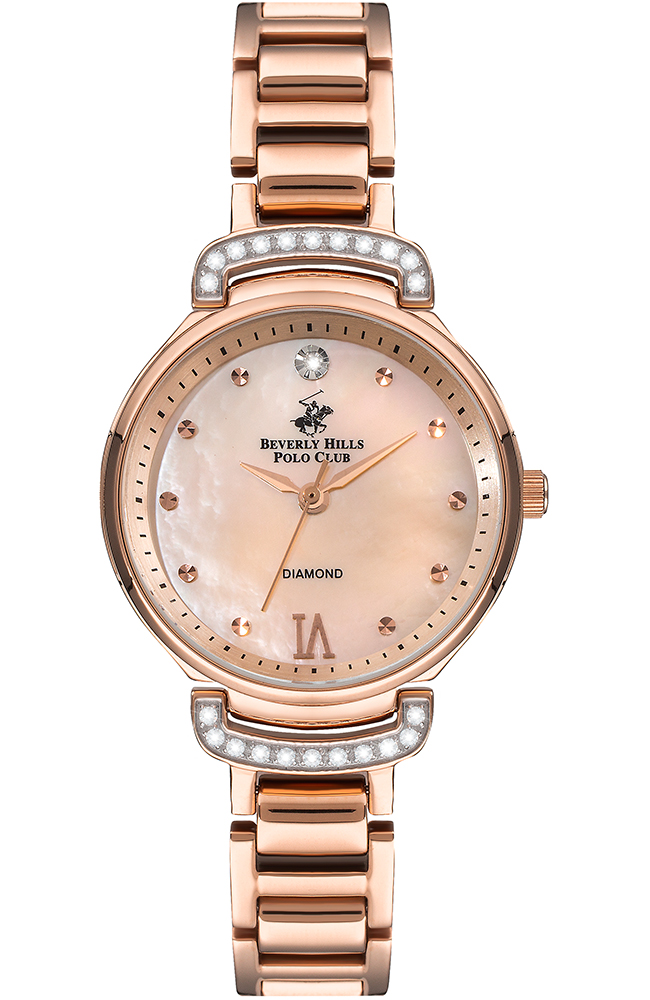 Γυναικείο Ρολόι Beverly Hills Polo Club με ροζ χρυσό καντράν, πέτρες ζιργκόν και μπρασελέ.