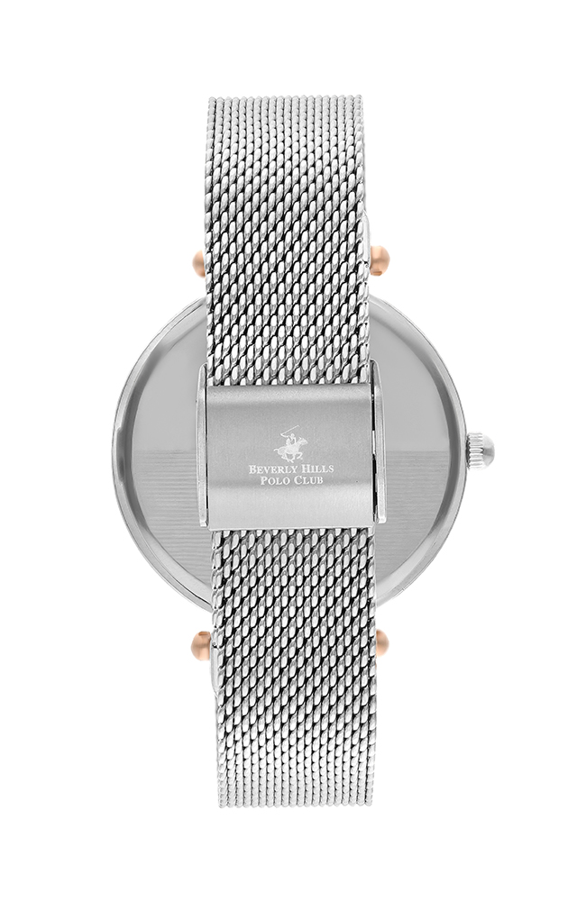 Γυναικείο Ρολόι Beverly Hills Polo Club με λευκό καντράν, πέτρες ζιργκόν και μπρασελέ.