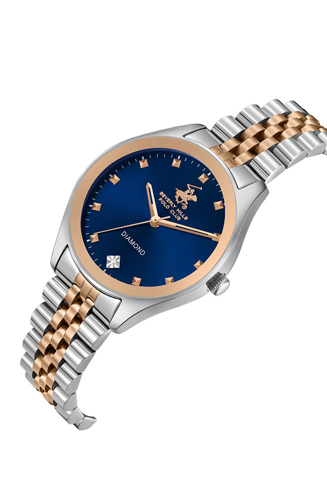 Γυναικείο ρολόι Beverly Hills Polo Club από ανοξείδωτο ατσάλι με μπλε καντράν, Διαμάντι και δίχρωμο μπρασελέ.