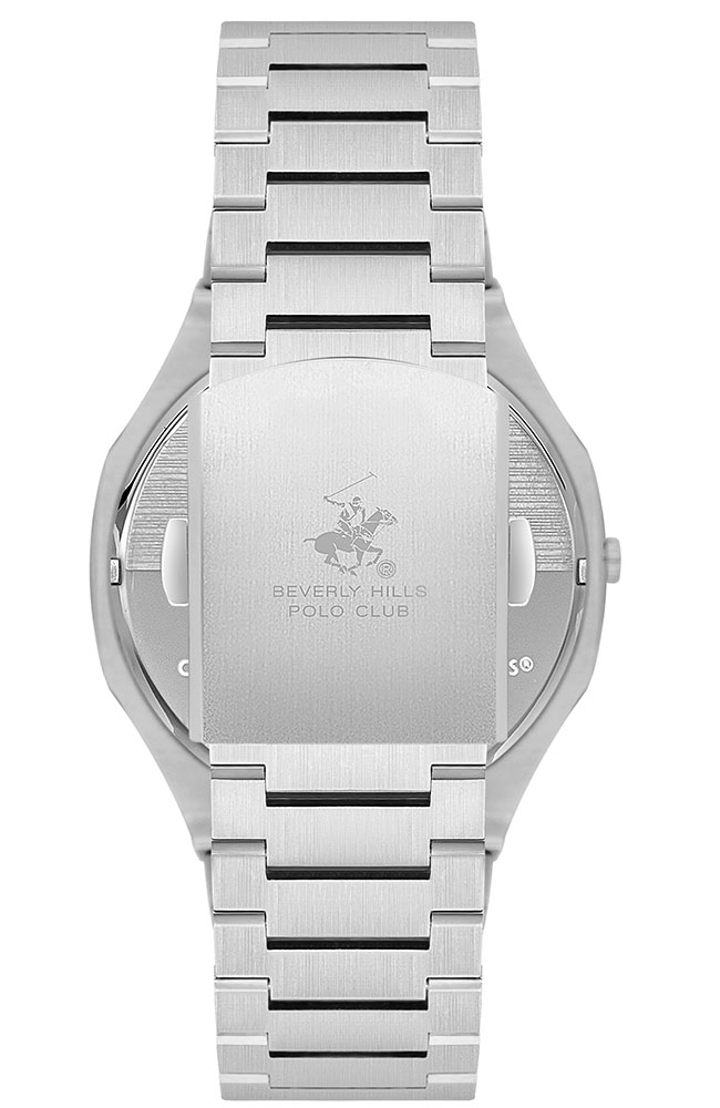 Ανδρικό Ρολόι Beverly Hills Polo Club από ανοξείδωτο ατσάλι με ασημί καντράν και ασημί μπρασελέ.