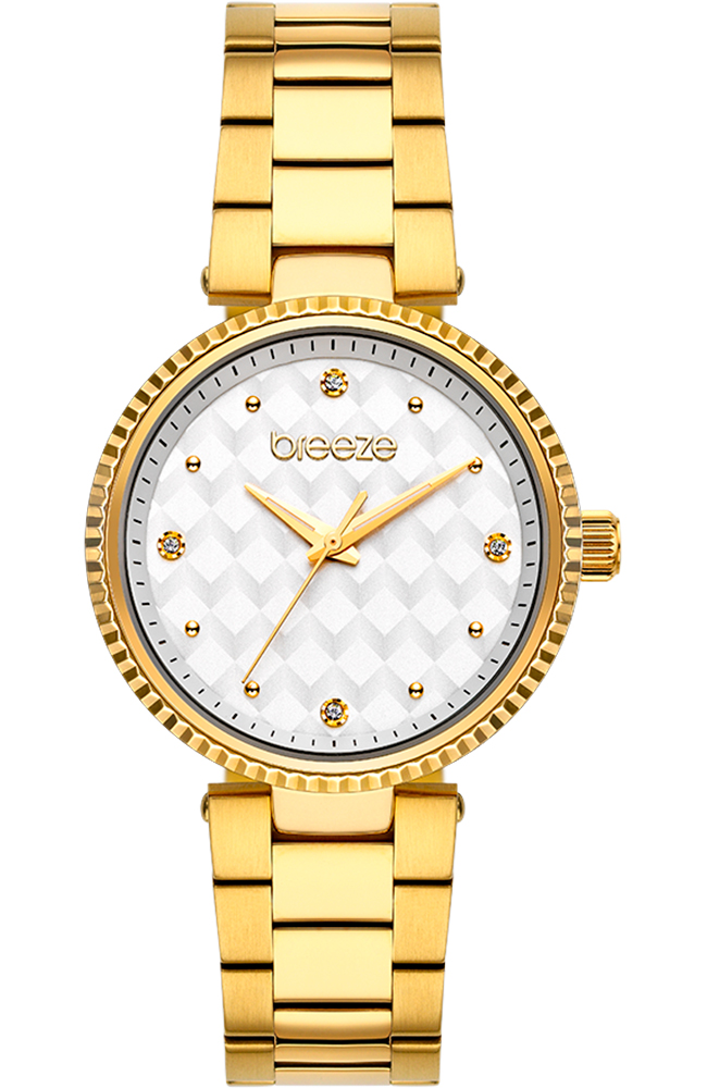 Γυναικείο ρολόι χειρός Breeze από ανοξείδωτο ατσάλι με λευκό καντράν, πέτρες ζιργκόν και μπρασελέ.