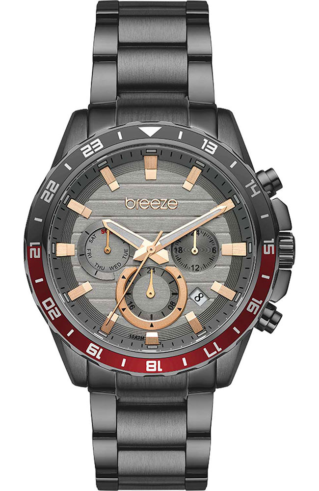 Ανδρικό ρολόι χειρός Breeze από ανοξείδωτο ατσάλι με ανθρακί καντράν και μπρασελέ.
