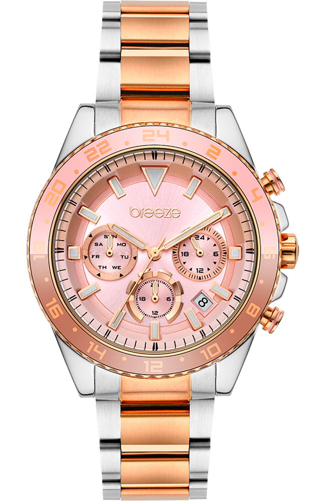 Γυναικείο ρολόι χειρός Breeze από ανοξείδωτο ατσάλι με ροζ καντράν και μπρασελέ.