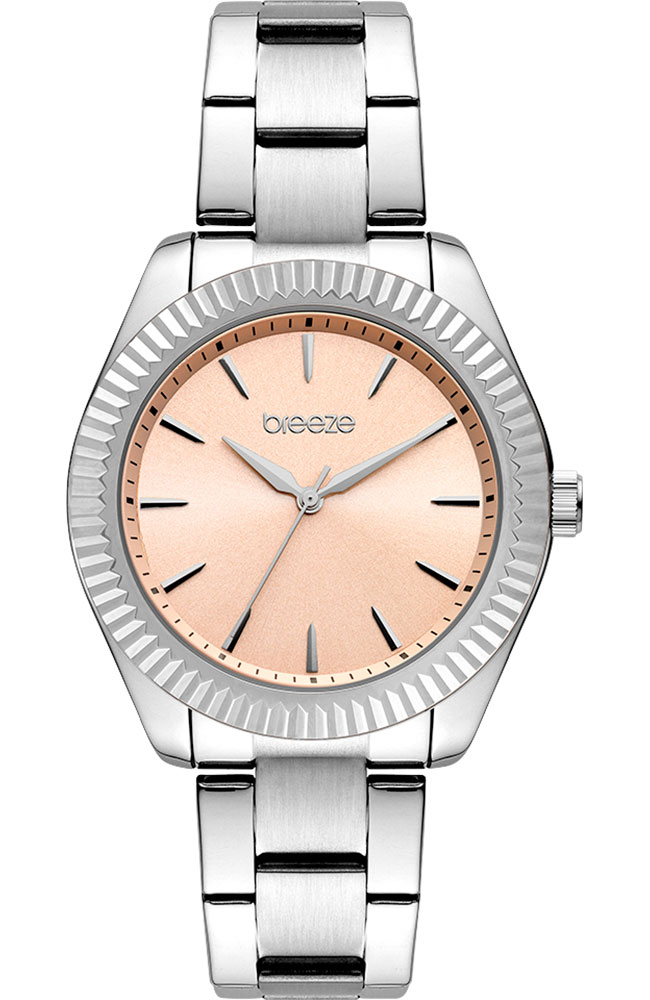 Γυναικείο ρολόι χειρός Breeze από ανοξείδωτο ατσάλι με σομόν καντράν και μπρασελέ.