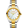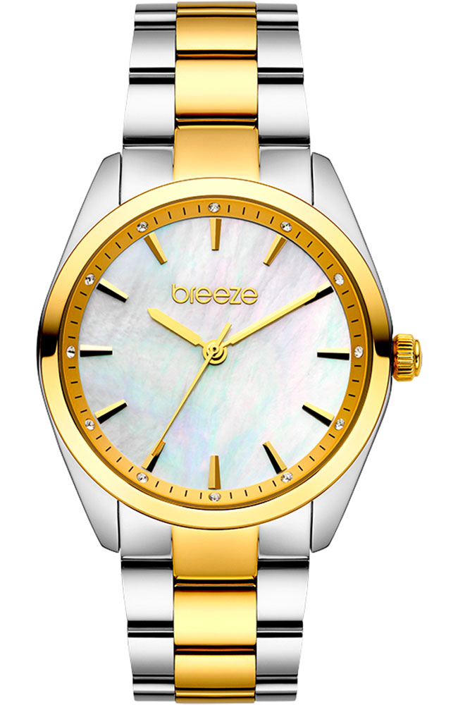 Γυναικείο ρολόι χειρός Χρονογράφος Breeze από ανοξείδωτο ατσάλι με λευκό φίλντισι καντράν, πέτρες ζιργκόν και δίχρωμο μπρασελέ.