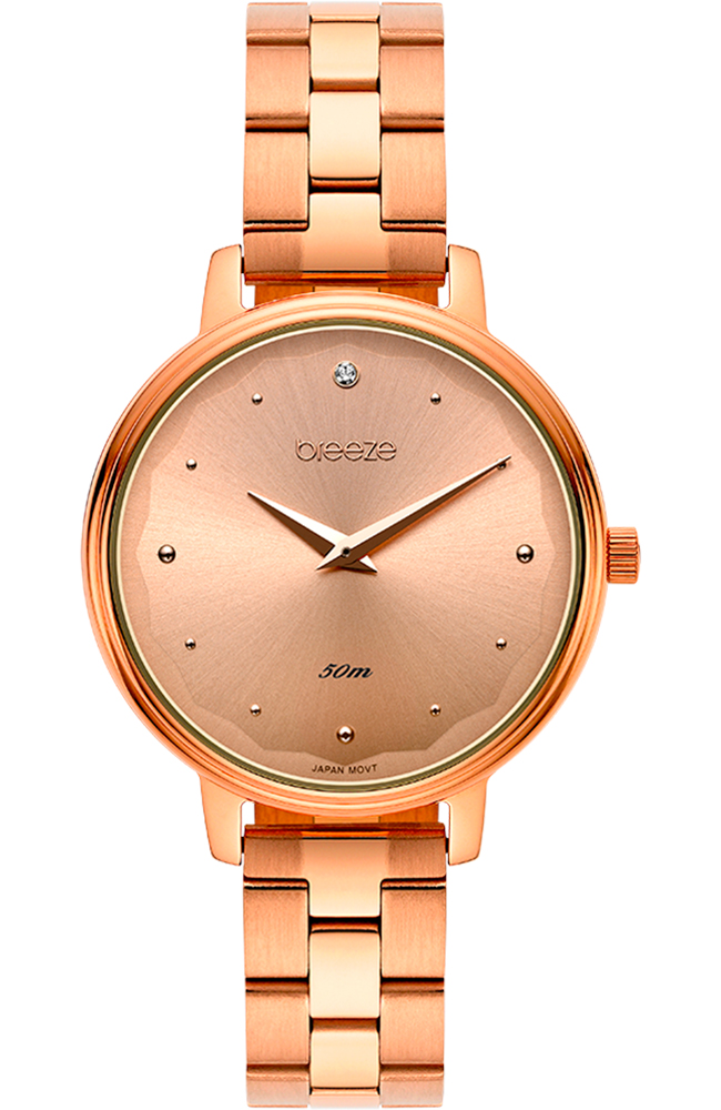 Γυναικείο ρολόι χειρός Breeze από ροζ επιχρυσωμένο ανοξείδωτο ατσάλι με ροζ χρυσό καντράν και μπρασελέ.