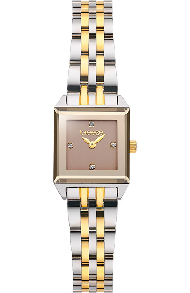 Γυναικείο ρολόι χειρός Breeze από ανοξείδωτο ατσάλι με καφέ καντράν και μπρασελέ.