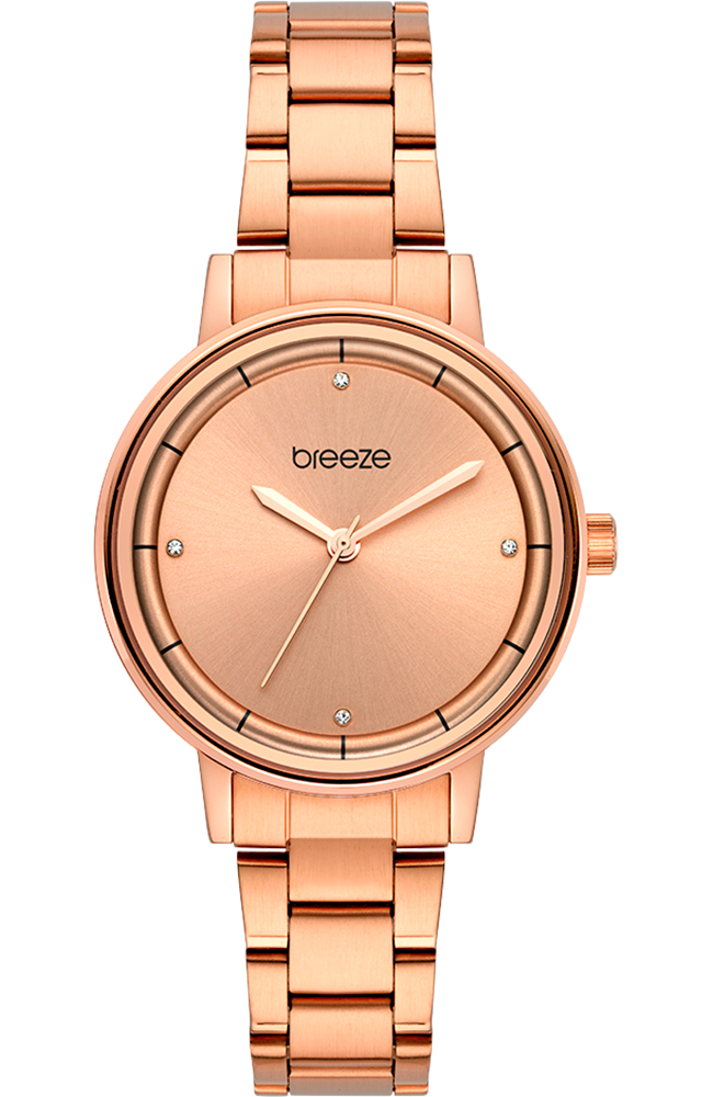 Γυναικείο ρολόι χειρός Breeze από ανοξείδωτο ατσάλι με ροζ χρυσό καντράν, πέτρες ζιργκόν και μπρασελέ.