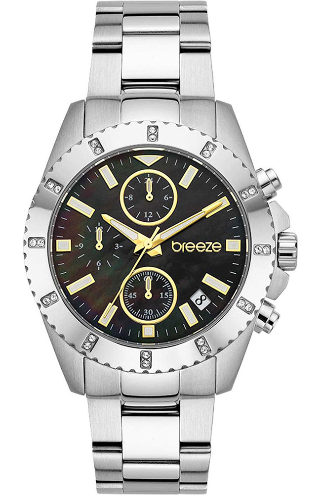 Γυναικείο ρολόι χειρός Χρονογράφος Breeze από ανοξείδωτο ατσάλι με μαύρο καντράν και μπρασελέ.