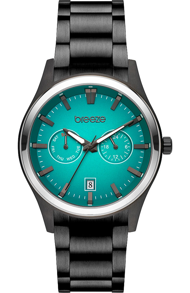 Ανδρικό ρολόι χειρός Breeze από ανοξείδωτο ατσάλι με τιρκουάζ καντράν και μπρασελέ.