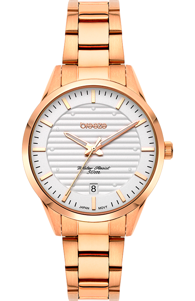 Γυναικείο ρολόι χειρός Breeze από ροζ επιχρυσωμένο ανοξείδωτο ατσάλι με λευκό καντράν και μπρασελέ.