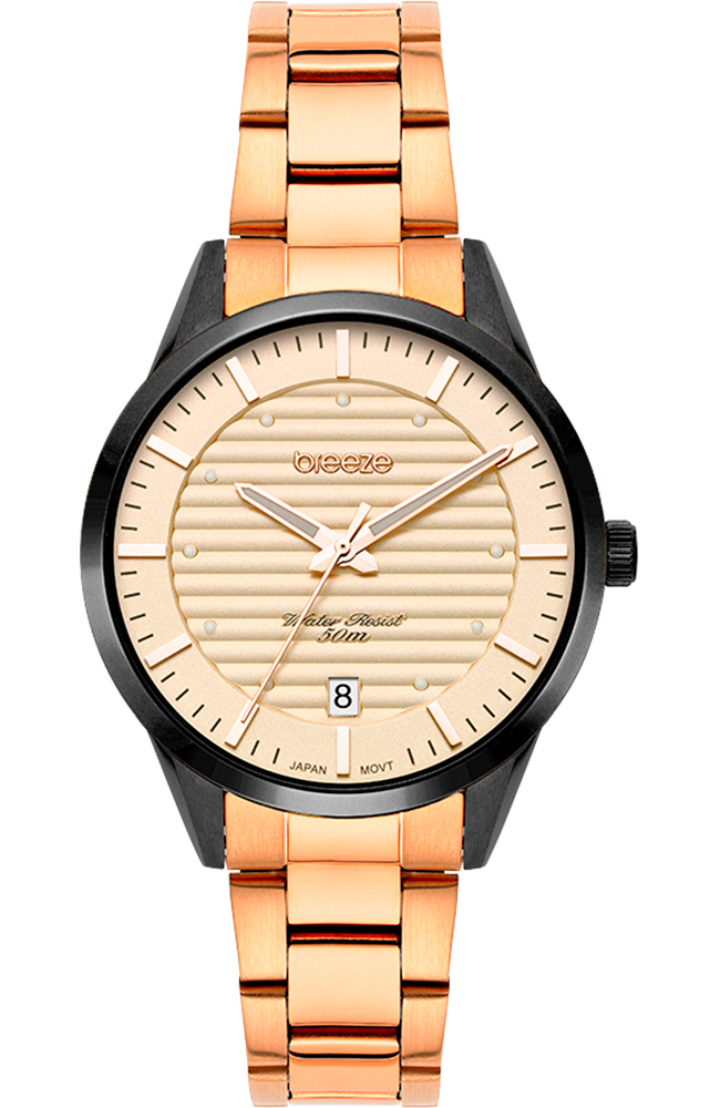 Γυναικείο ρολόι χειρός Breeze από ροζ επιχρυσωμένο ανοξείδωτο ατσάλι με μπεζ καντράν και μπρασελέ.