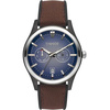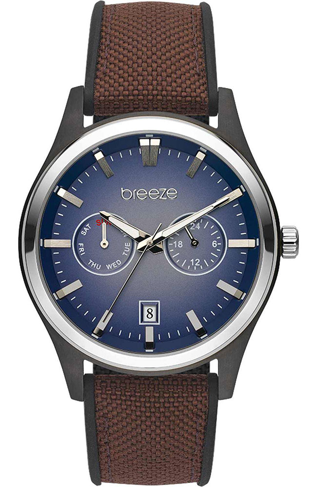 Ανδρικό ρολόι χειρός Breeze από ανοξείδωτο ατσάλι με μπλε καντράν και καφέ υφασμάτινο λουράκι.