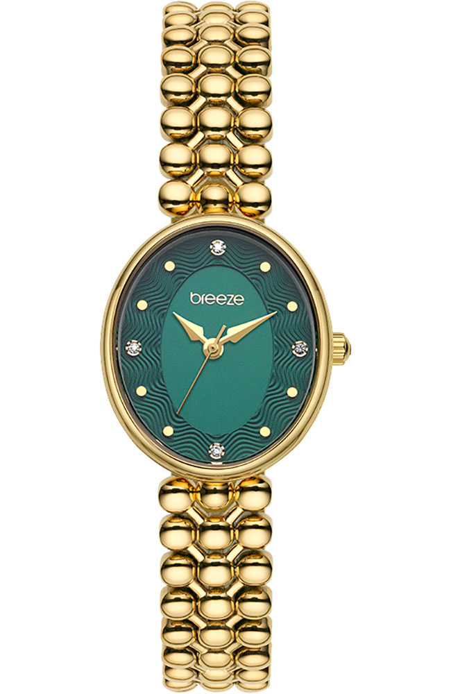 Γυναικείο ρολόι χειρός Breeze από ανοξείδωτο ατσάλι με πράσινο καντράν και μπρασελέ.