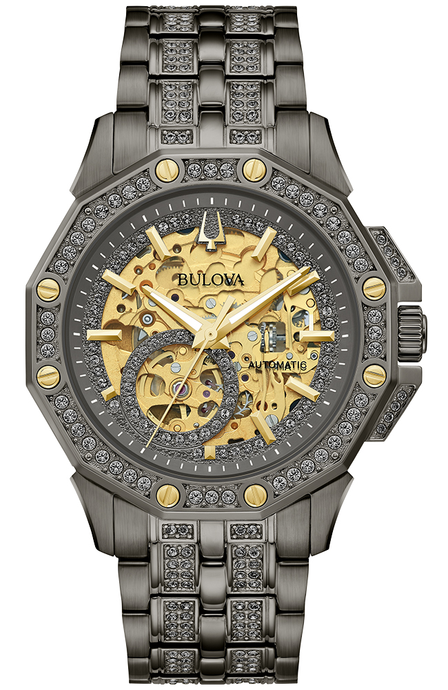 Γυναικείο ρολόι Bulova από ανοξείδωτο ατσάλι με διάφανο καντράν, 251 πέτρες ζιργκόν και μπρασελέ.