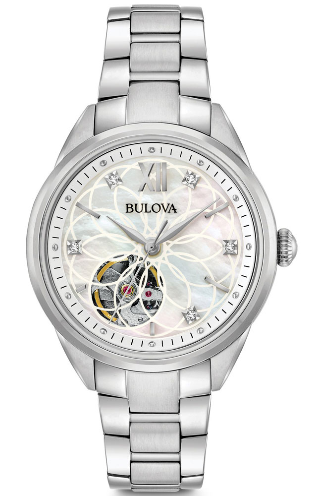 Γυναικείο ρολόι Bulova από ανοξείδωτο ατσάλι με λευκό φίλντισι καντράν, Διαμάντια και μπρασελέ.