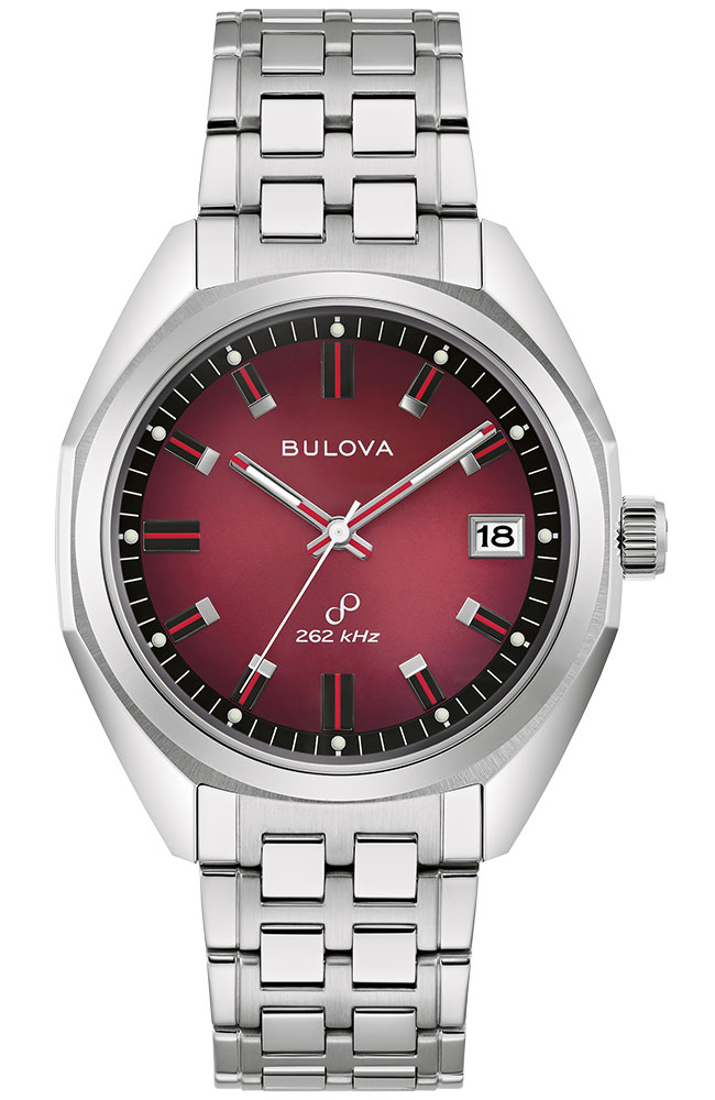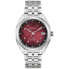 Ανδρικό ρολόι Bulova από ανοξείδωτο ατσάλι με μπορντό καντράν και ασημί μπρασελέ.