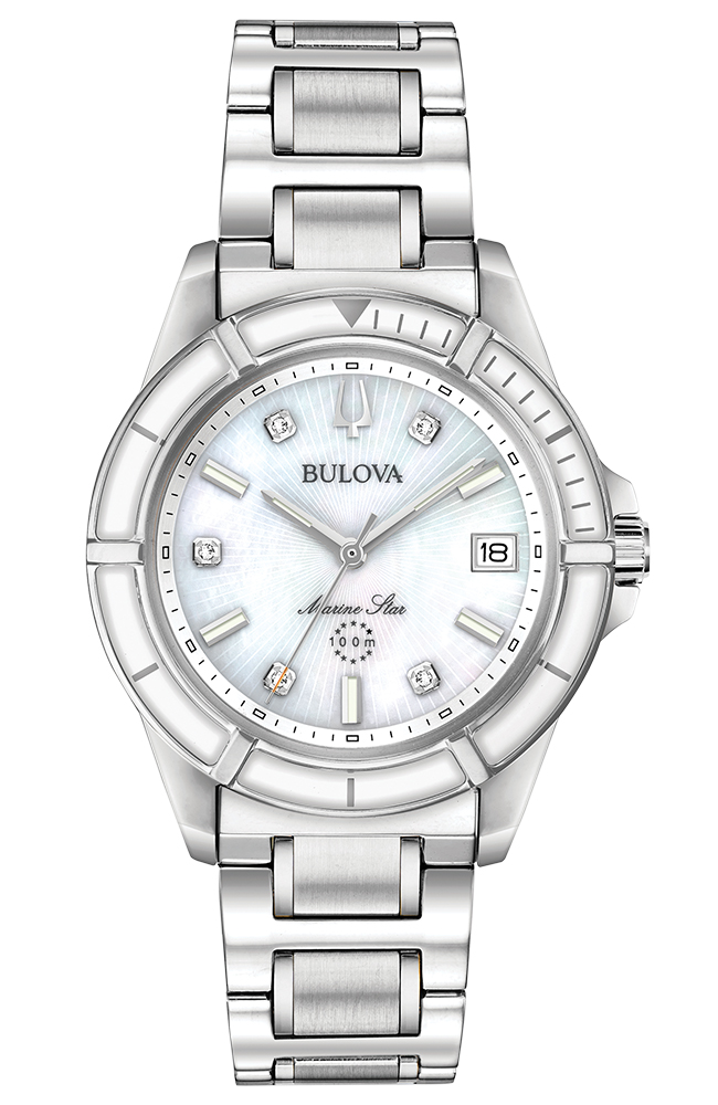 Γυναικείο ρολόι Bulova από ανοξείδωτο ατσάλι με λευκό φίλντισι καντράν, Διαμάντια και μπρασελέ.