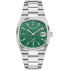 Ανδρικό ρολόι Bulova από ανοξείδωτο ατσάλι με πράσινο καντράν και ασημί μπρασελέ.