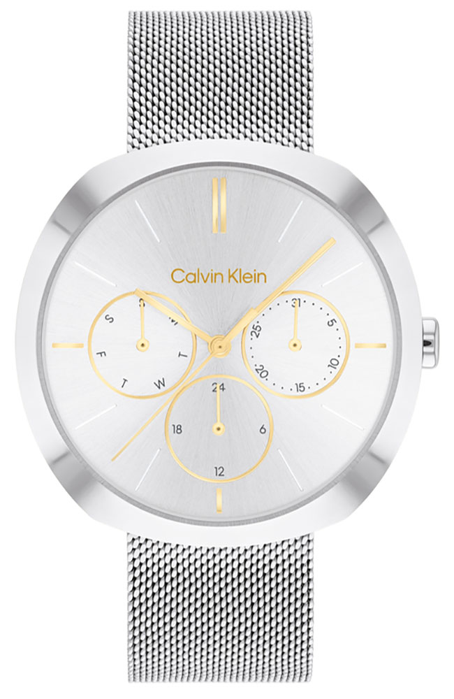 Γυναικείο ρολόι Calvin Klein από ανοξείδωτο ατσάλι με ασημί καντράν και ασημί μπρασελέ.