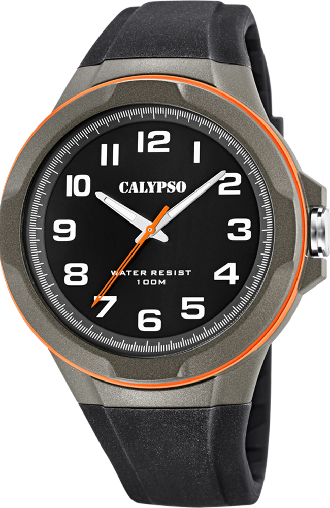 Ανδρικό ρολόι χειρός Calypso με μαύρο καντράν και καουτσούκ λουράκι.