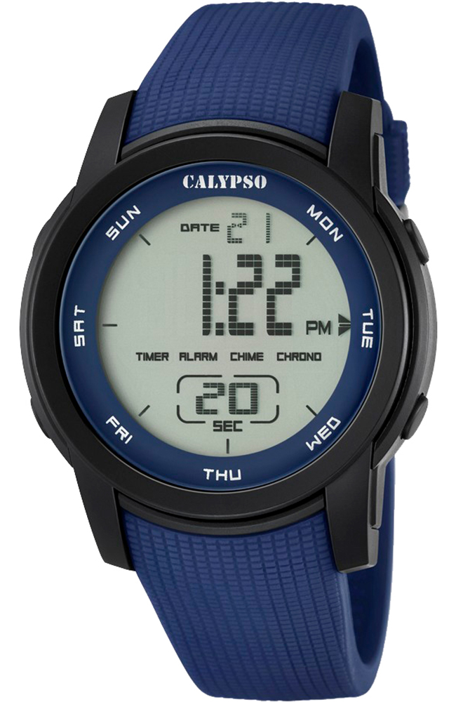 Ανδρικό ρολόι χειρός Calypso με ψηφιακό καντράν και μπλε καουτσούκ λουράκι.
