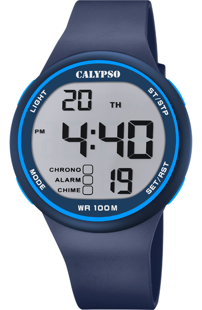 Ανδρικό ρολόι χειρός Calypso με ψηφιακό καντράν και μπλε καουτσούκ λουράκι.