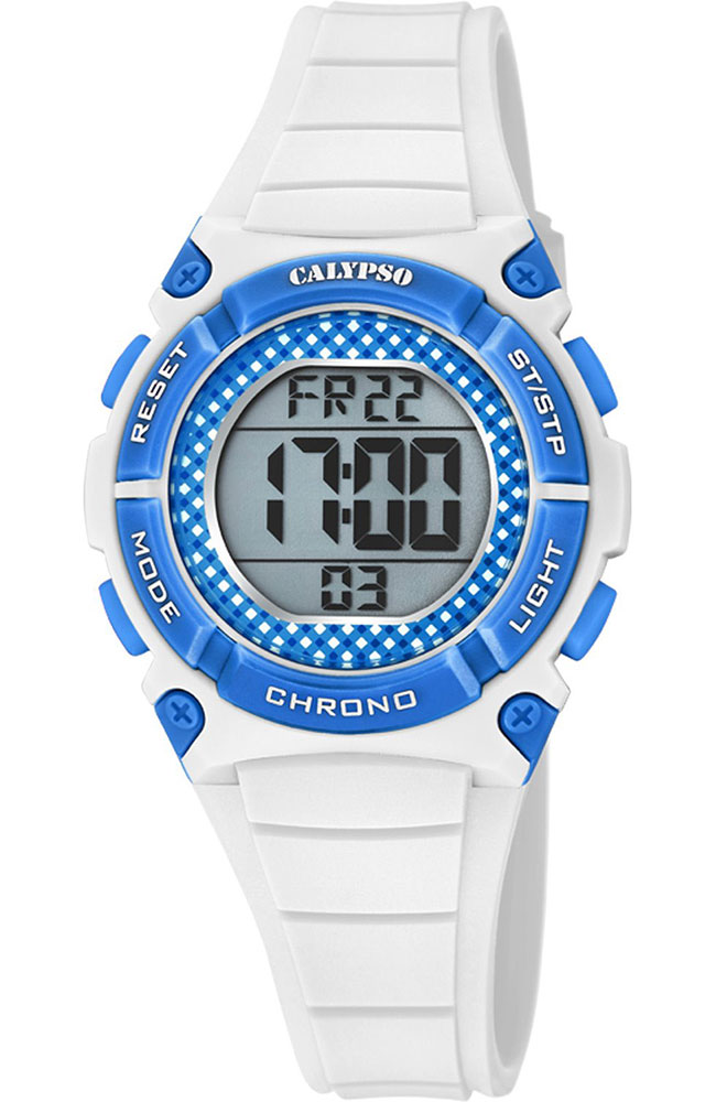 Παιδικό ρολόι χειρός Calypso με ψηφιακό καντράν και λευκό πλαστικό λουράκι.