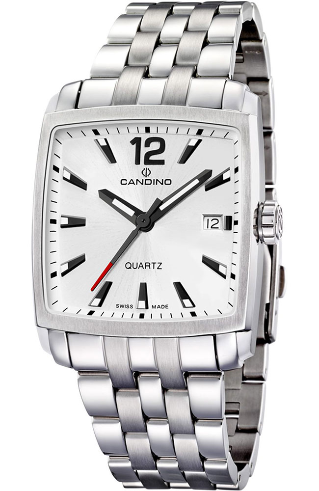 Ανδρικό ρολόι Candino Ελβετικής κατασκευής από ανοξείδωτο ατσάλι με ασημί καντράν και μπρασελέ.