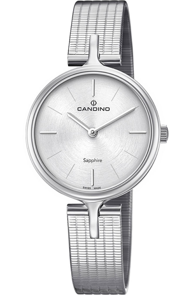 Γυναικείο ρολόι Candino Ελβετικής κατασκευής από ανοξείδωτο ατσάλι με ασημί καντράν και μπρασελέ.