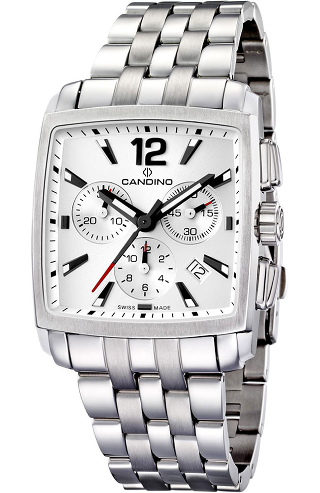 Ανδρικό ρολόι Candino Ελβετικής κατασκευής από ανοξείδωτο ατσάλι με ασημί καντράν και μπρασελέ.