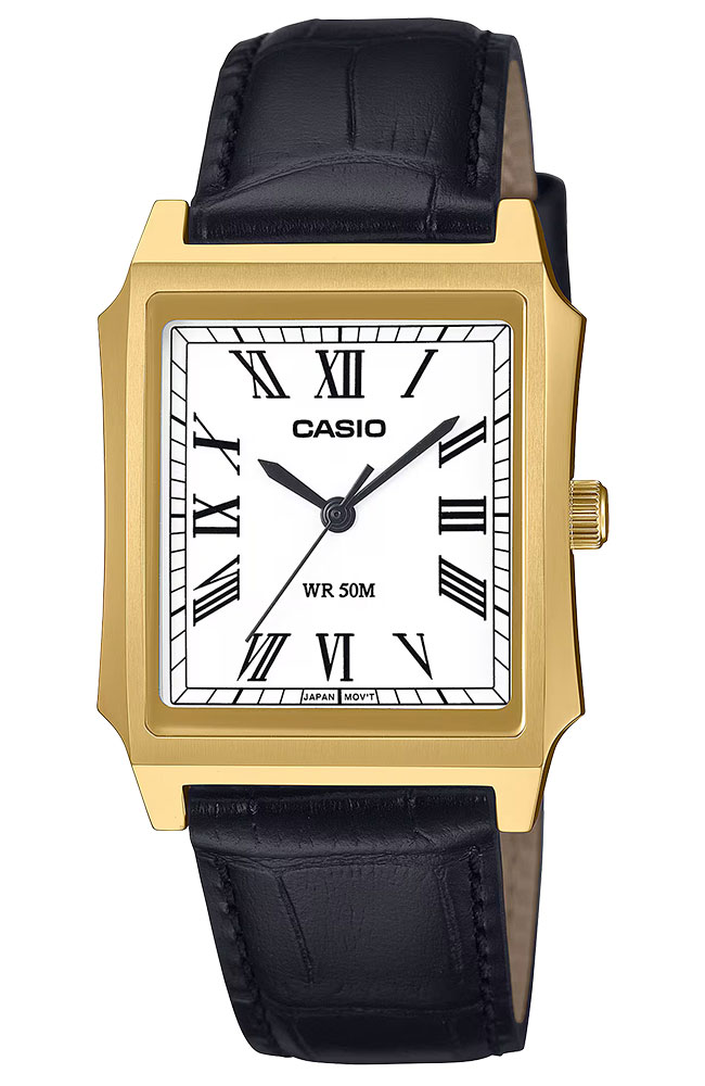 Ανδρικό ρολόι Από τη σειρά Collection της Casio ένα κλασσικό ρολόι από ανοξείδωτο ατσάλι με λευκό καντράν και καφέ δερμάτινο λουράκι.