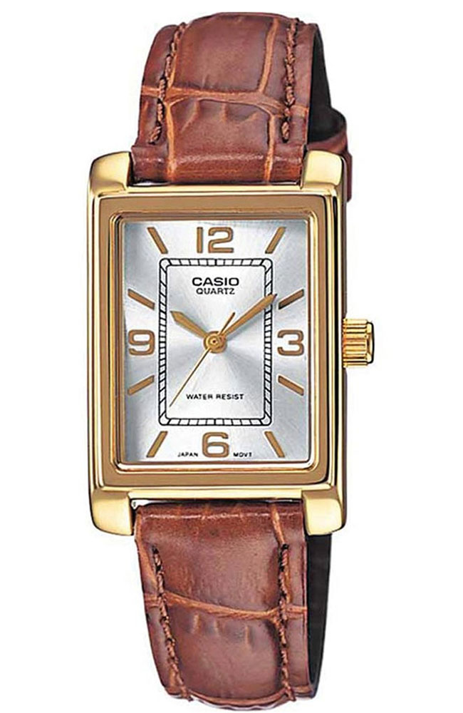 Γυναικείο ρολόι από τη σειρά Collection της Casio ένα κλασσικό ρολόι από επιχρυσωμένο ανοξείδωτο ατσάλι με ασημί καντράν και δερμάτινο λουράκι..