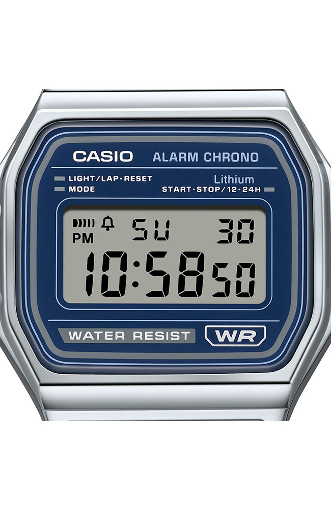 Από το ντεμπούτο του το 1989, το A158 αποτελεί αγαπημένη επιλογή χάρη στον απλό, διαχρονικό σχεδιασμό του που παραμένει πάντα επίκαιρος, στο μεταλλικό λουράκι με premium αίσθηση και στην προσιτή τιμή του. Το A158WEA ενισχύει αυτή τη διαχρονική γοητεία με μια δροσερή πινελιά μπλε στο καντράν.