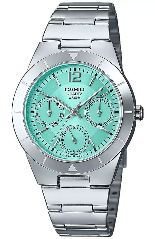 Γυναικείο ρολόι Από τη σειρά Collection της Casio ένα κλασσικό ρολόι από ανοξείδωτο ατσάλι με τιρκουάζ καντράν και μπρασελέ.