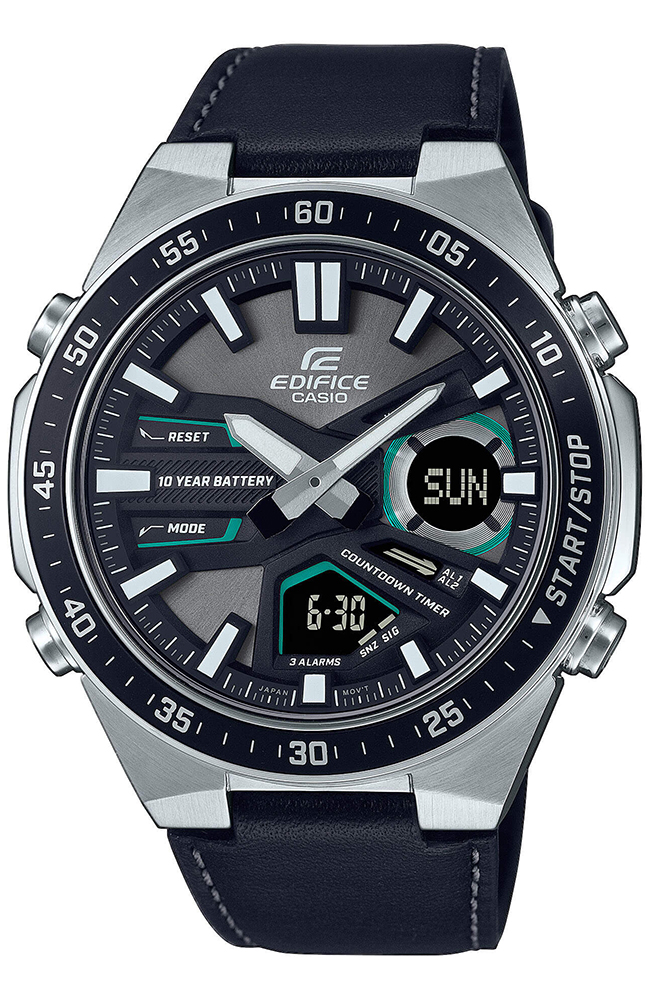 Ανδρικό ρολόι χειρός Casio από ανοξείδωτο ατσάλι με μαύρο καντράν και δερμάτινο λουράκι.
