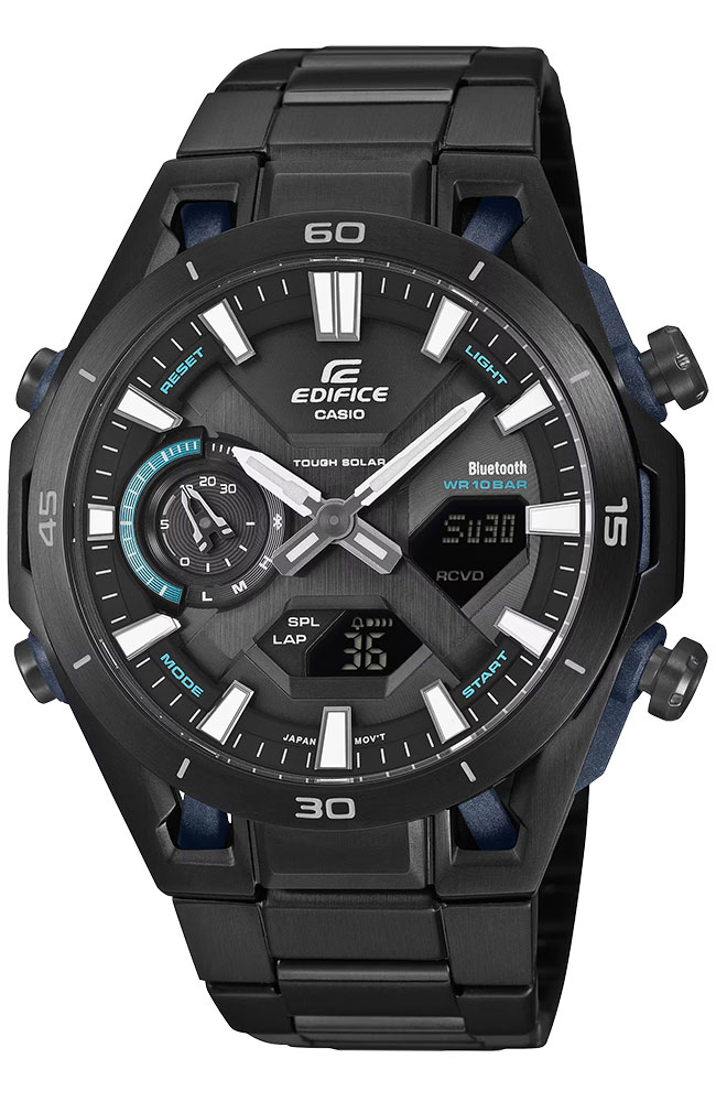 Πέρα από την εντυπωσιακή του εμφάνιση, το EDIFICE ECB-2300 SOSPENSIONE προσφέρει και κορυφαία λειτουργικότητα. Η σύζευξη με smartphone μέσω Bluetooth® εξασφαλίζει αυτόματη διόρθωση ώρας και εύκολη ρύθμιση της παγκόσμιας ώρας και άλλων λειτουργιών μέσω της εφαρμογής. Με τεχνολογία Tough Solar για σταθερή λειτουργία, ανθεκτικό στις γρατζουνιές κρύσταλλο ζαφειριού, πρακτική στεγανότητα έως 100 μέτρα και πολλά ακόμη χαρακτηριστικά, το ρολόι αυτό αποδίδει στο μέγιστο των δυνατοτήτων του.
