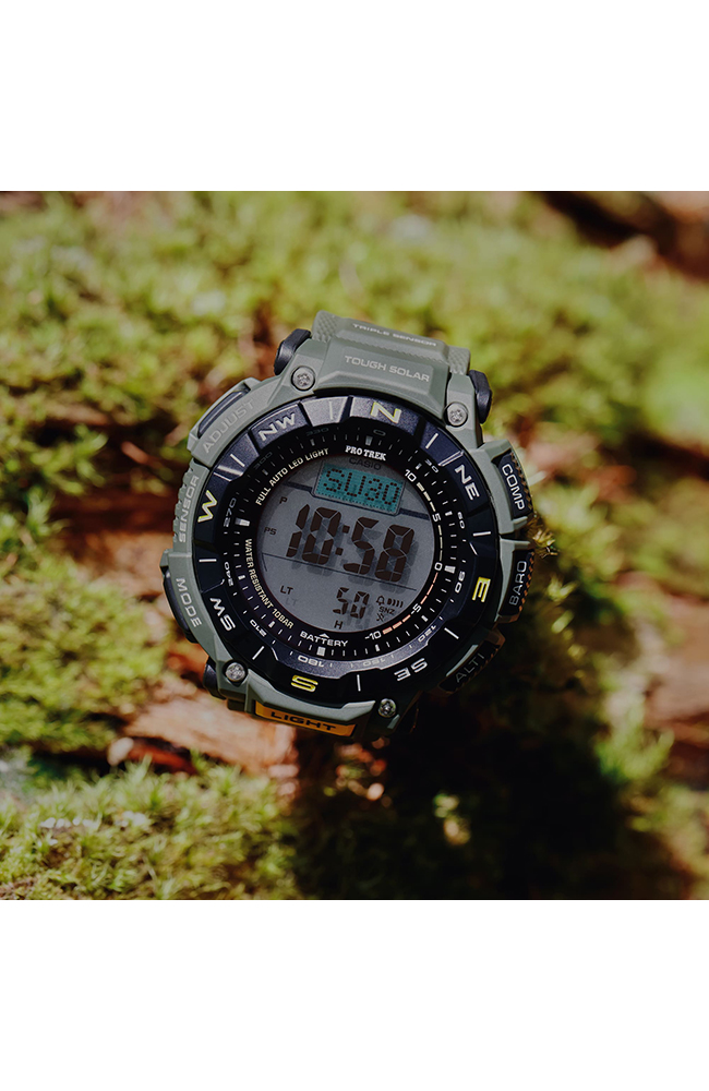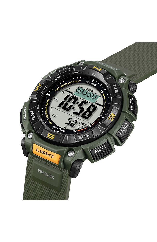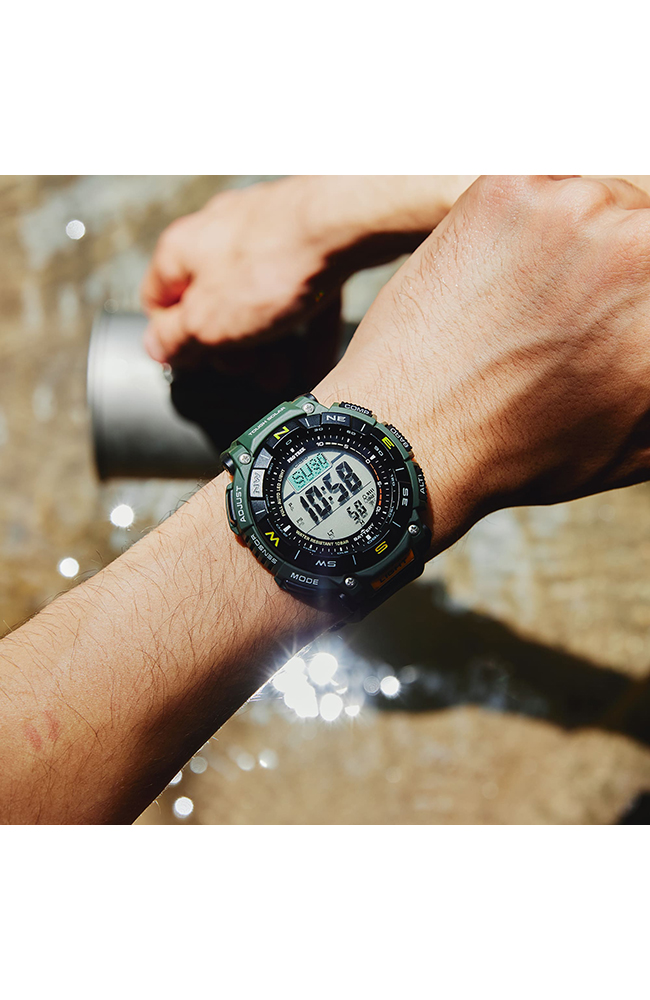 Ανδρικό ρολόι Casio από καουτσούκ με ψηφιακό καντράν και πράσινο καουτσούκ λουράκι.