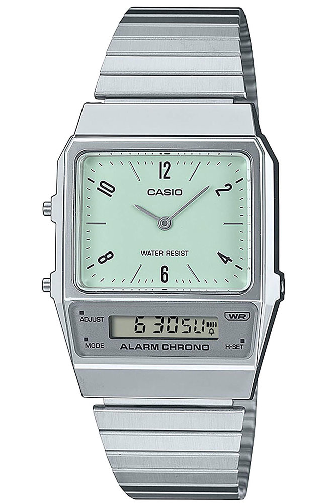 Ρολόι από τη Casio από ανοξείδωτο ατσάλι με πρασινό καντράν και μπρασελέ.