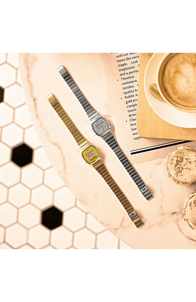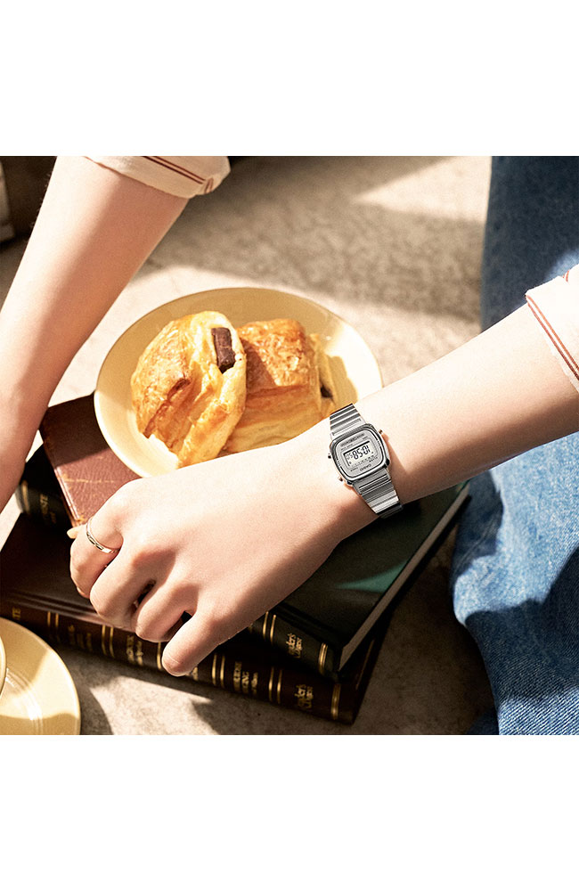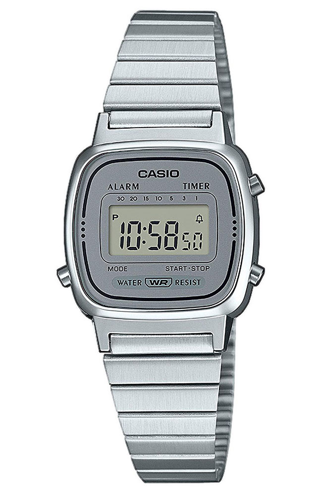 Γυναικείο ρολόι από τη σειρά Vintage της Casio ένα κλασσικό ρολόι από ανοξείδωτο ατσάλι με ψηφιακό καντράν και μπρασελέ.