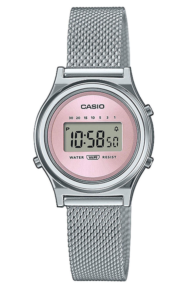 Γυναικείο ρολόι από τη σειρά Vintage της Casio ένα κλασσικό ρολόι από ανοξείδωτο ατσάλι με ροζ καντράν και μπρασελέ.