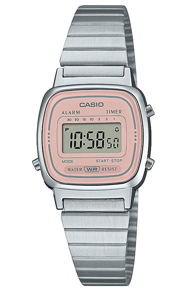 Γυναικείο ρολόι από τη σειρά Vintage της Casio ένα κλασσικό ρολόι από ανοξείδωτο ατσάλι με ψηφιακό καντράν και μπρασελέ.