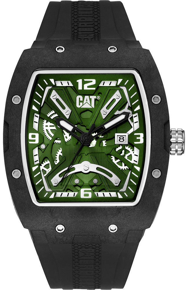 Ανδρικό ρολόι Caterpillar με πράσινο καντράν και μαύρο καουτσούκ λουράκι.