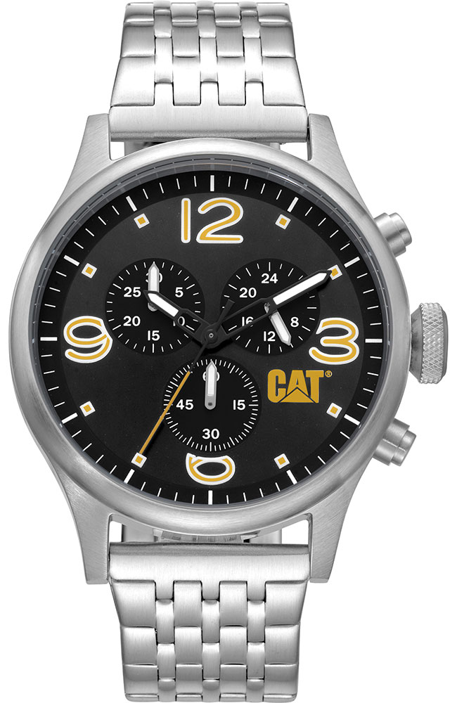 Ανδρικό ρολόι Caterpillar από ανοξείδωτο ατσάλι με καντράν και ασημί μπρασελέ.