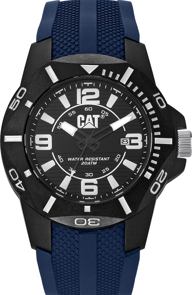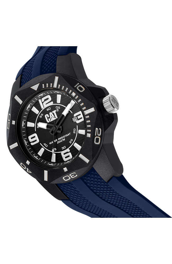 Ανδρικό ρολόι Caterpillar από ανοξείδωτο ατσάλι με μαύρο καντράν και καουτσούκ λουράκι.
