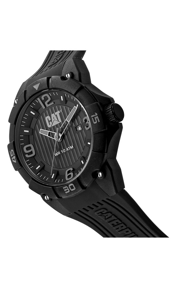 Ανδρικό ρολόι Caterpillar με μαύρο καντράν και μαύρο καουτσούκ λουράκι.