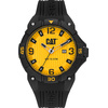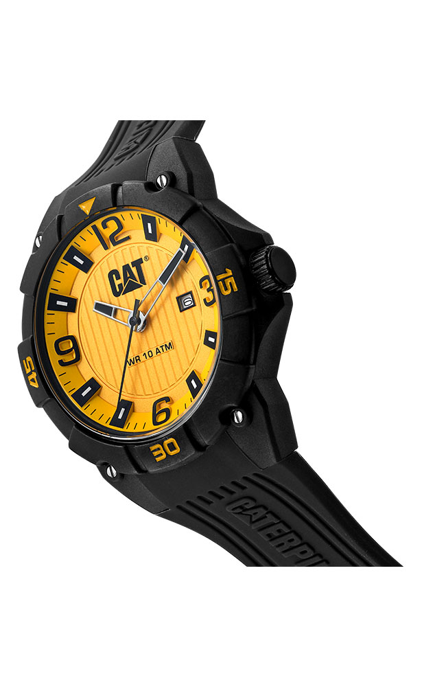 Ανδρικό ρολόι Caterpillar με κίτρινο καντράν και μαύρο καουτσούκ λουράκι.