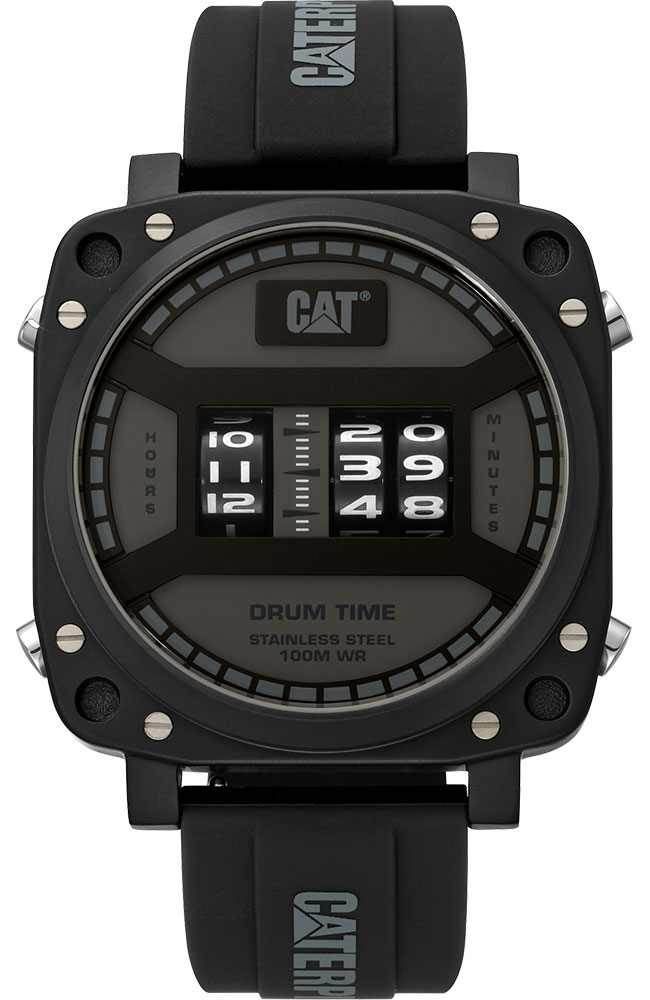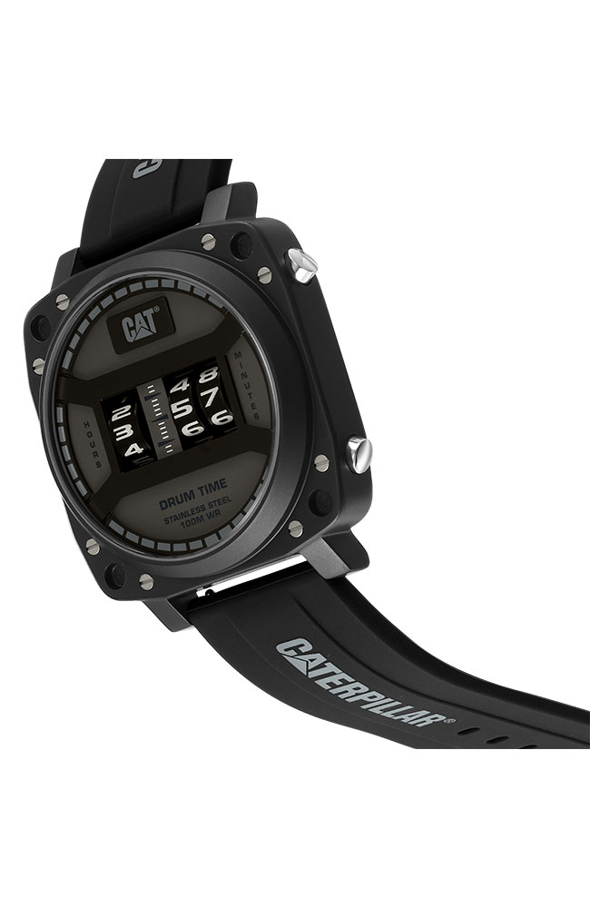 Ανδρικό ρολόι Caterpillar από ανοξείδωτο ατσάλι με ανθρακί καντράν και μαύρο καουτσούκ λουράκι.