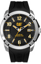 Ανδρικό ρολόι Caterpillar από μαύρο ανοξείδωτο ατσάλι με μαύρο καντράν και κίτρινο καουτσούκ λουράκι.