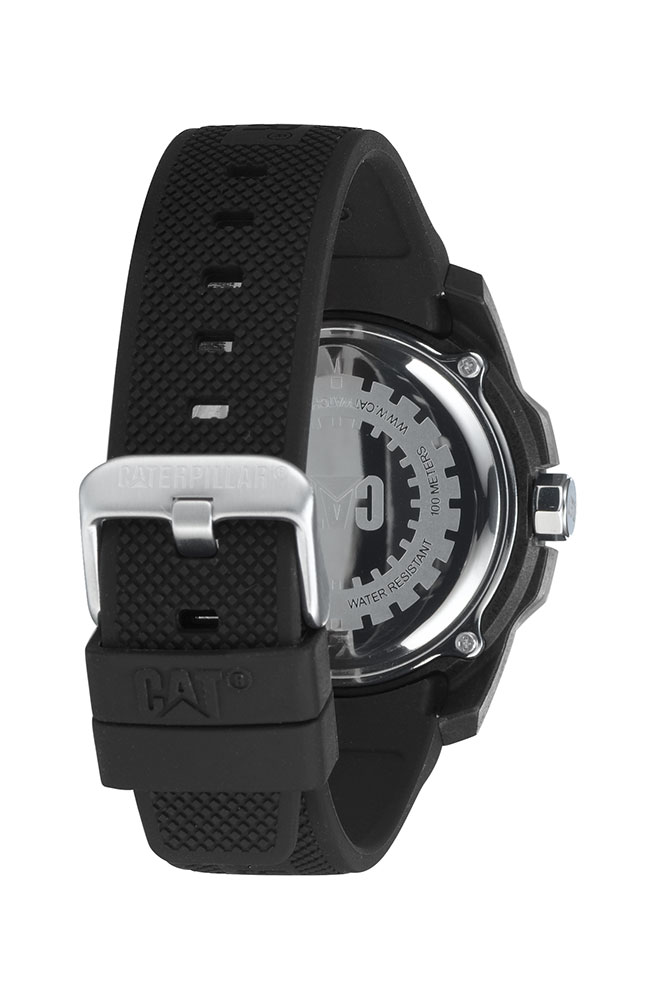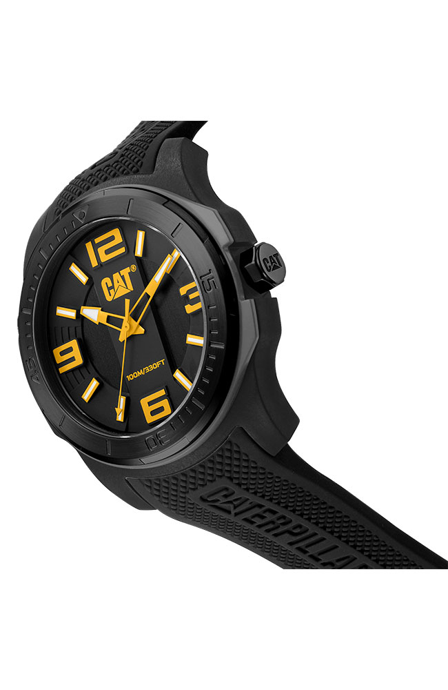 Ανδρικό ρολόι Caterpillar με μαύρο καντράν και μαύρο καουτσούκ λουράκι.